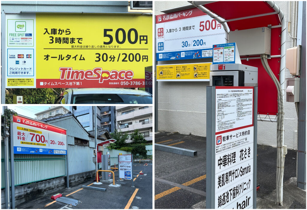 近隣の提携駐車場:『タイムスペース池下第1』、『名鉄協商パーキング池下北第7』、『名鉄協商パーキング池下北第9』をご利用下さい。クリニック受付時に駐車証明書をご提示いただければ、 クリニック受付から会計終了までにかかった時間分の駐車サービス券を発行いたします。